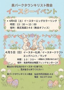 4/5(日)10:30 - 高森明泉幼稚園フレンドセンター2F イースター礼拝・エッグハント